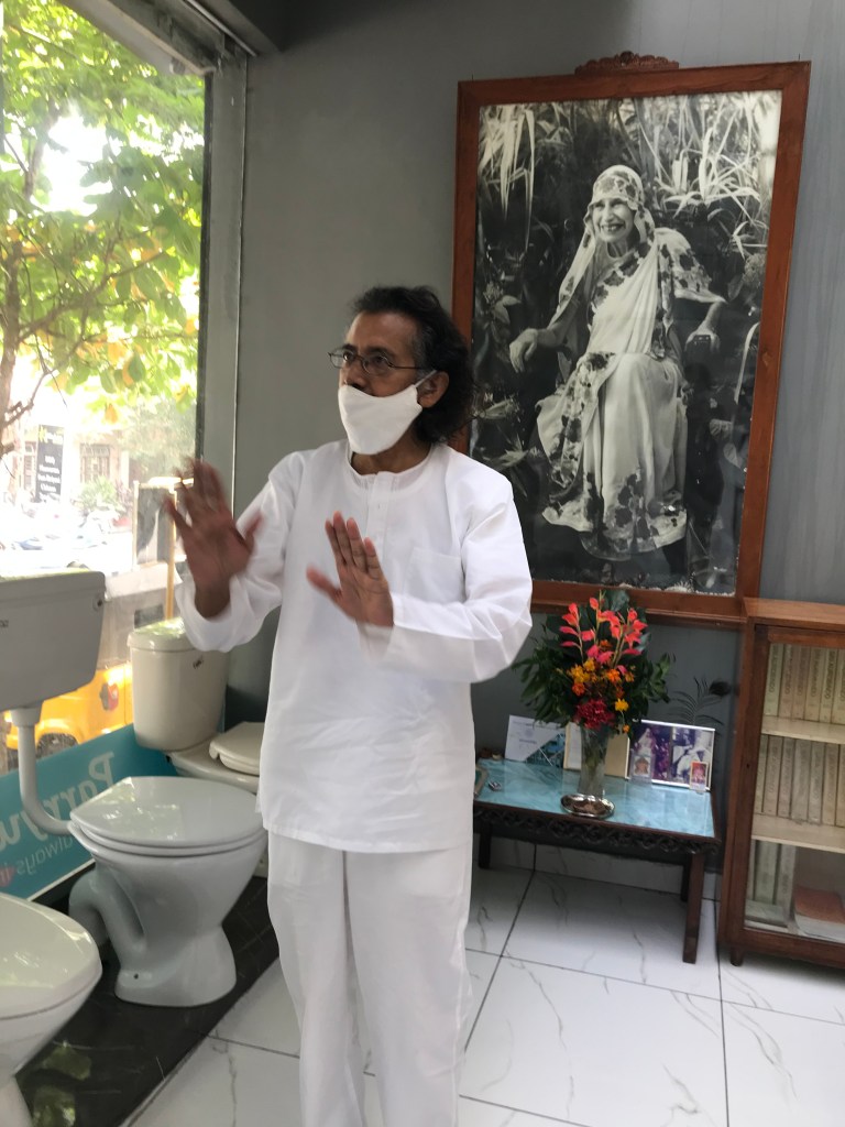 We just came to G’s new apartment. The electrician is working so Sanjiv and G wanted to check what he was doing and also give him some instructions. The plumbing work in both the bathrooms is done. G’s bathroom got a complete makeover. It now looks like new. We bought the bathroom fittings from an Aurobindo Ashram affiliated store named Honesty a few days ago. It is a big and beautiful store, and the staff is sweet and respectful. G had spent about an hour there. After a while I noticed people in the store’s office staring at G. One person in particular, an Oriya (hailing from the state of Orissa) gentleman, who was showing us around, couldn’t take his eyes off G. Even after his job was done and we were waiting for the bill, he kept on staring and talking to G, his cheeks were flushed red with heightened emotions. Even the store owner, an old man who had seen The Mother (the French guru Mira Alfassa), wanted to know from his staff, who G was! I felt the atmosphere in the store was heavily charged as long as G was there.