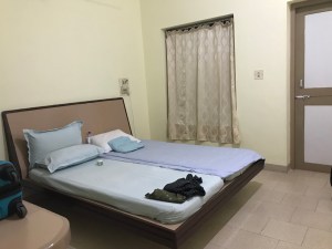 Yesterday night I moved to the New Guest House run by the Aurobindo Ashram. It is right opposite G’s apartment building. I moved out of the tiny room which I had earlier booked for a month. I was there for two nights and couldn’t sleep a wink. The noise of vehicles from the street and dogs barking all night drove me crazy. I wanted to move out after the very first night but G asked me to try another night and then decide. The second night was even worse. At least 5-6 dogs barked all night without a break right in front of our building. At times the noise was so loud, I felt the dogs were in my room screaming next to my bed! It was as if they wanted to chase me out of the place! My eyes burned and head felt heavy without sleep for two consecutive nights. There was also something else that was odd about the accommodation which made me uncomfortable. I told G something was not right there, but I couldn’t pin point what it could be. I usually relax easily, but something about this room (even during day time) was making me jittery and throwing my system off rhythm. I decided to forget the 30k advance we had paid to the owner and move to the ashram (the owner refunded 10k to me within a couple of days). I booked a room at the ashram guest house for 8 nights straightaway, although I didn’t know if the rooms were any good. I thought at least the place will be silent, that’s good enough for me at this point. When I checked in yesterday evening, I was delighted to see the cleanliness and simplicity of the place. My room is simply beautiful. Basic, sparkling clean, airy and cozy. My room number is B11 and is named TRUTH. Today Revathi too moved to the ashram. The elderly Manager at the reception, Mr. Dolia, is friendly with me, so I asked him if I could take a gentleman, who is like my father (G), upstairs to show my room. Usually they don’t allow outsiders, but he readily agreed. When he came out to see who was with me, G greeted him warmly with a namaskar, and pointing to me said, “She is my daughter, or rather my granddaughter!” The gentleman started laughing. He said he knew Bengali and had lived for some years in Kolkata long time ago. When G saw my door plate B11 Truth, he remarked, “Truth! Yes! And number “11” symbolises your two little feet … standing on your two little in life by yourself” Revathi’s room number is B14 and is named Miracle. G remarked as he entered her room, “Yes, miracles do happen!” He was very happy to see our rooms. Later Venky and his two friends also checked in, their rooms are Prosperity and Modesty. I feel so relieved to stay by myself right next to G’s house. I immediately felt good in my new place.