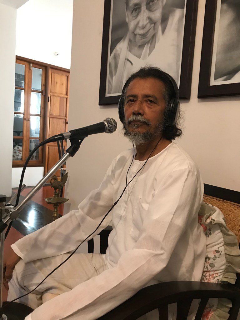 I forgot to write that G and I recorded some songs before Venky left on the 25th (he drove us all to Chennai, stayed overnight at Chennai, then drove to Bangalore on 26th Feb). Venky had set up his mobile studio and kept everything ready for us to record at Devotion. On 23rd G recorded Barshano Mandrito. On 24th I recorded Murshid Paroshmoni, Dhonyo Dhonyo, Labonye Purno Pran and Arunokanti Ke Go. I could feel my voice was at its peak and flowing without resistance. G sensed it very quickly and said I should record as much as I could. All the songs came out very well. Both Venky and G were greatly satisfied. They both said my voice quality and delivery were top notch, one if the best they’ve heard. Then G recorded Tomar Kotha Hetha. His voice sounded sublime. His tone and texture has something special that cannot be pin-pointed. He said this quality developed after he met UG. It has something to do with the thyroid and parathyroid glands getting activated to work in their natural rhythm. He said it happens if an individual has attained a stability that is not disturbed and rattled continuously by information. He said the special quality or zing (he used this term) in the voice did not originate from the nose or throat but somewhere in between. He sang an unplugged version of the song in his natural flow. When we listened to the recording, it sounded hypnotic, to say the least! Since he started singing regularly during the lockdown, his voice has become smoother and his delivery confident and controlled. He implements the nuances in bhava and navigates between the high and low notes effortlessly these days. His pronunciation of Bengali is just impeccable, must have always been that way, I guess. His grasp over his mother tongue is phenomenal, of a very high order.