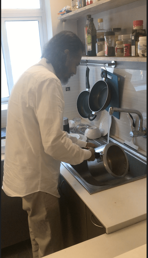 He has taken over the kitchen! He plans the menu for our lunches and dinners. He is teaching me everything – washing dishes, then wiping them dry, having a standard measure for every ingredient of cooking, optimizing the portions so that nothing goes to waste, storing the rice, lentils, whole grains in jars and labelling them – a super efficient and practical way of functioning.