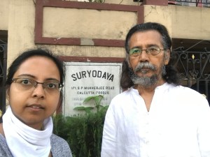 Since the Lake is closed, we walk on the Southern Avenue and its by-lanes in the morning. Today, he kept walking to the end of Southern Avenue where it meets the SP Mukherjee Road. Upon reaching the crossing, he took a left turn. I now knew where he was taking me. Shortly, we reached the gate of Suryodaya! This is where I met him 3.5 half years ago on 29th October! What a pleasant surprise!