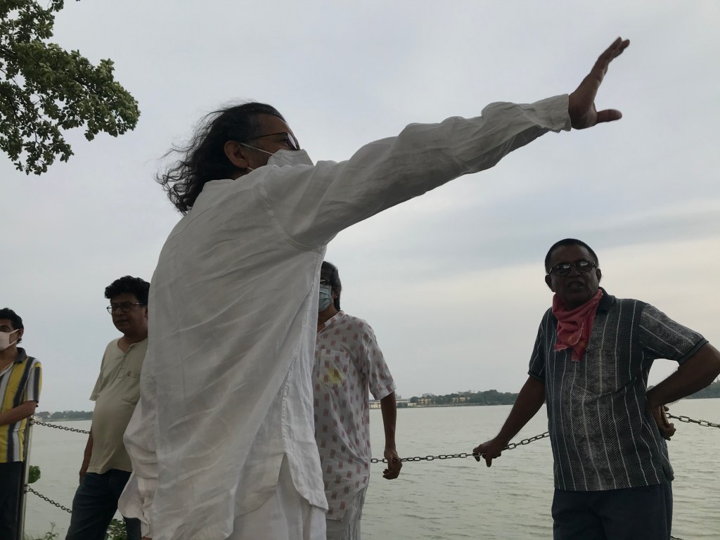 His eldest sister passed away on 13th May at Hindmotor. We got the news around 9:30 in the morning. She was very dear to him and was unwell since the last few years. G paid for her hospitalisation and care before she passed. He called his youngest brother immediately to arrange for a car. Uber and other cabs were off the road because of the lockdown. He got cash, got dressed, we ate early lunch and were ready to leave. His youngest brother arranged a car from his doctor friend for us. We took just 40 minutes to reach Hindmotor. Roads were empty. Her body was on a bed in a small room packed with people. He held the sheet along with five other people and brought the body down to be put inside the hearse. We walked to the cremation ground just five minutes from there by the bank of Ganges, a beautiful place. There were some old friends of his too.Then he and his brothers took her up to the incinerator. In 15 mins all that was left of her was a handful of ash. For the first time, I felt death had nothing to do with sorrow or loss. His brothers and sisters carried out the rituals without any drama or emotional exhibition. G was just normal, didn’t come in the way of any rituals, let everything happen as his family wanted. We went back briefly to his ancestral house and then left for Kolkata. He then had the idea of making a slideshow of her photos with him singing Madhuro madhoro dhwani baje, a Tagore song in the background. Venky worked hard and created a delightful piece.